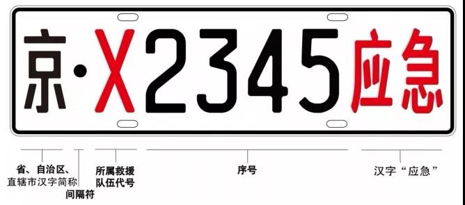 應急救援專用號牌分為汽車號牌和摩托車號牌兩種,汽車號牌每副兩只,分別懸掛在車輛前后部;摩托車號牌為單只,懸掛在車輛后部。